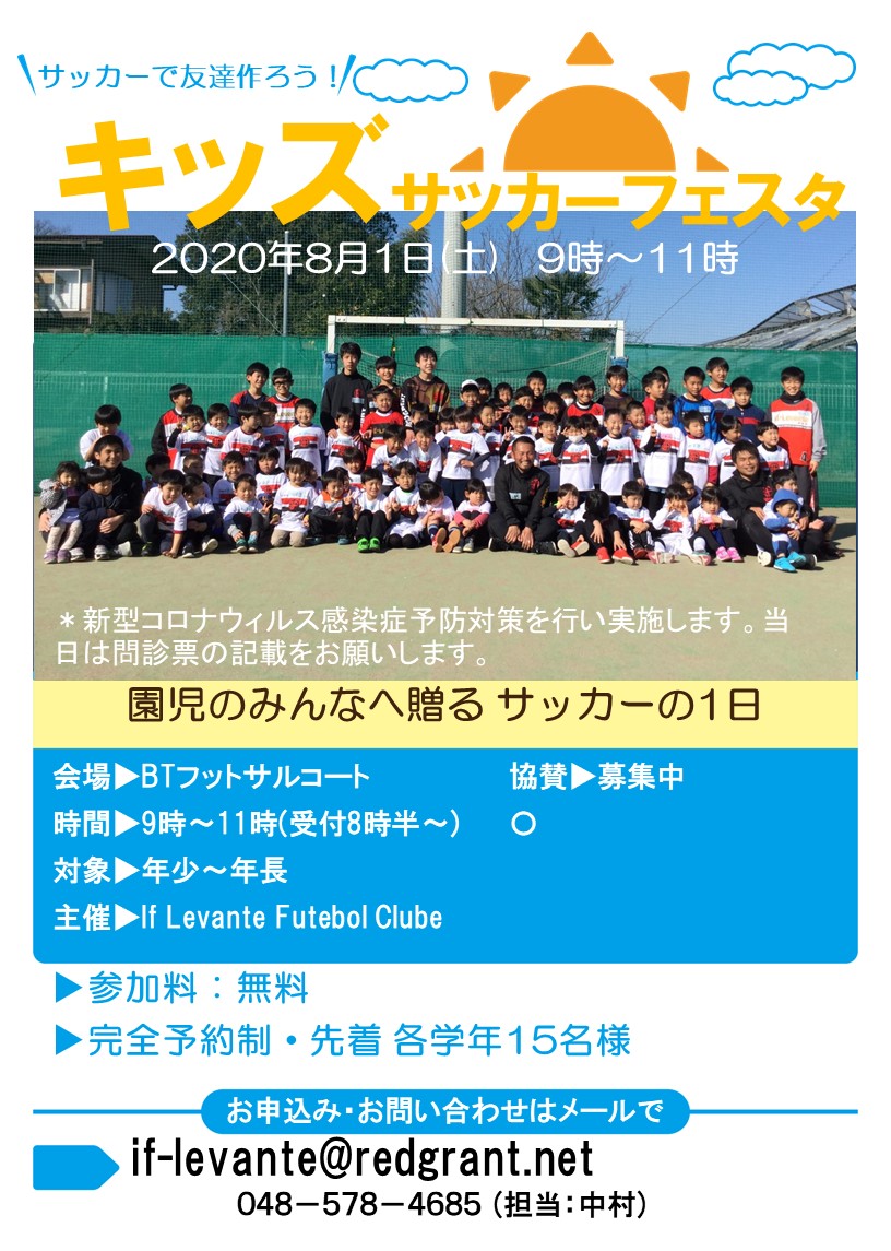 8月1日㈯園児対象のキッズサッカーフェスタの開催を予定します