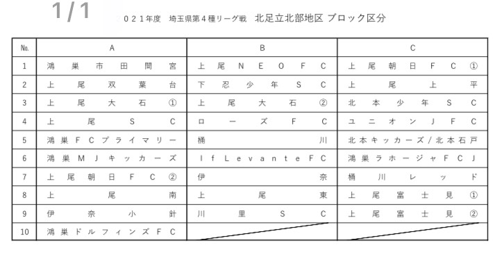 埼玉県4種リーグ北足立北部地区 ブロック決定 2021.04.08 昨年度は開催も難しい中行われた4種リーグでした 本年は4月から通常通りで行われます。 そして4種リーグの地区ブロックが決定しました。 If Levante Futebol ClubeはBブロック 開幕戦は4月11日城山公園になります。 1勝でも多く勝利して南部大会を目指します。 まずは11日に1勝出来るようにみんなで日々の成果を出していきたいと思います。 どうぞ応援宜しくお願い致します。