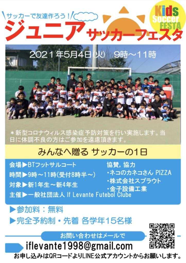 ジュニアサッカーフェスタを開催いたします。