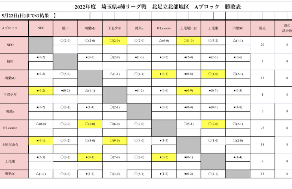 5月22日に4種リーグ北足立北部地区Aブロック前期最終節が開催