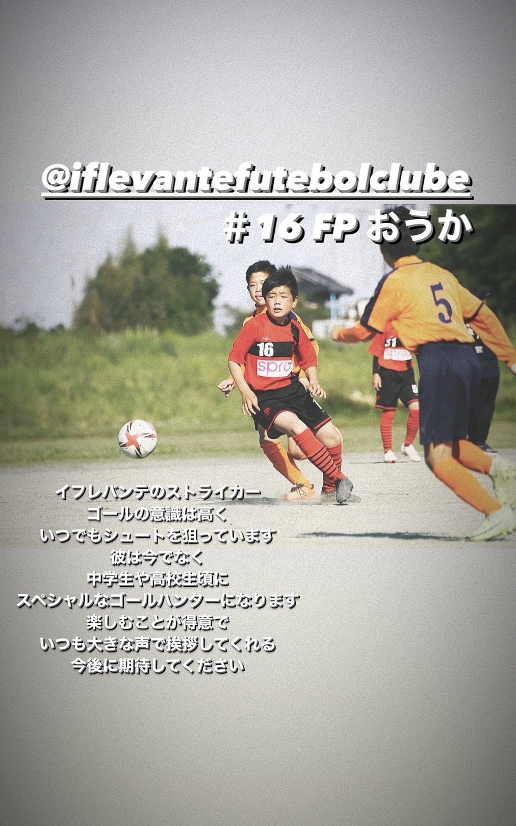 勝手に選手紹介U-12 2022.07.04 U-12選手を監督が勝手に紹介しています。 みんなの特徴があるので楽しんでください。6年生キャプテン だいと6年生 こう 6年生 おうか 次回をお楽しみに!!