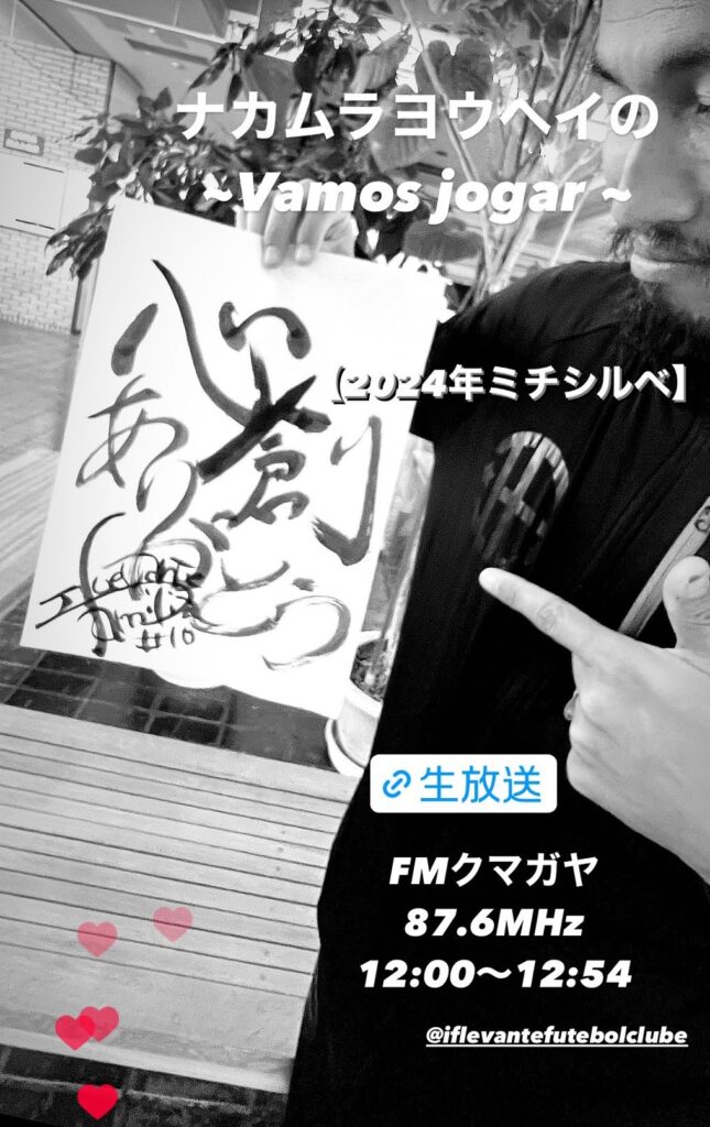 【2024年】お待たせしました 2024.01.09 【お待たせしました】 本日から各校スクールでトレーニング始まります。 本日は北本校になります。 みんなで最高のシーズンへ向けて 1セッション1セッション学び多く楽しんでいきましょう。 みんなに会えるのが楽しみです。 それではこれから【生放送】 FMクマガヤ87.6MHz ナカムラヨウヘイの~Vamos jogar ~ 12時〜オンエア 楽しんできます。 今日からまたよろしくお願いします。