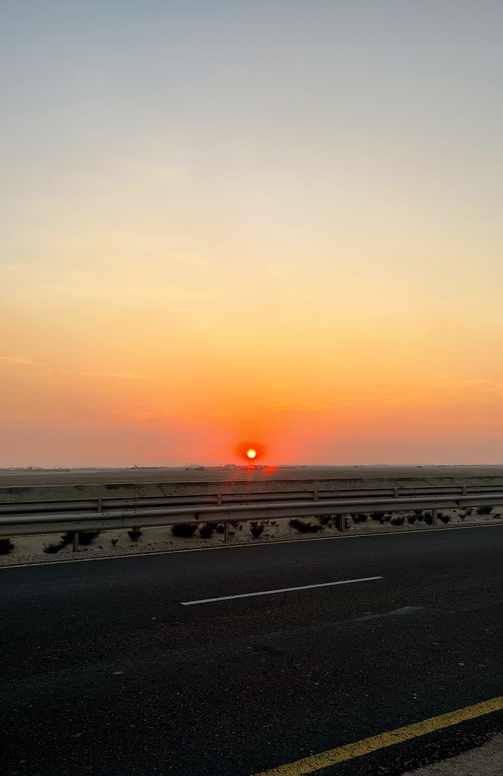 ドーハで見た地平線に沈む夕日