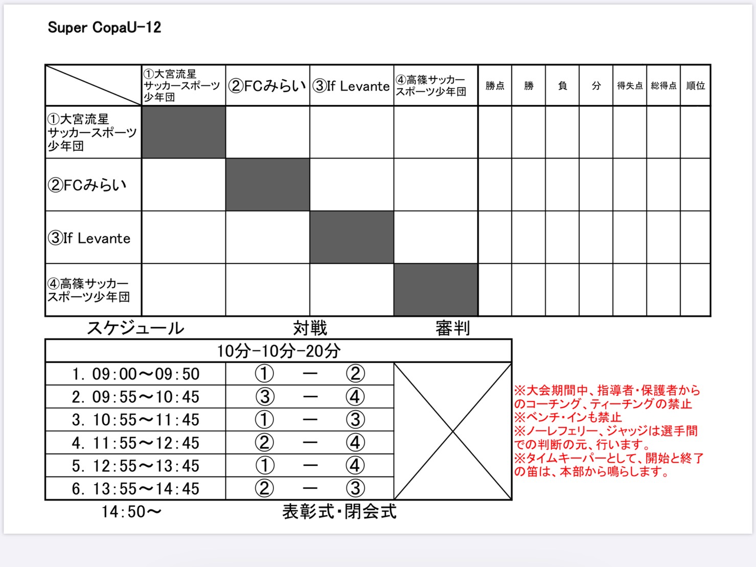 U-12ノーコーチング&ノーレフェリー大会結果