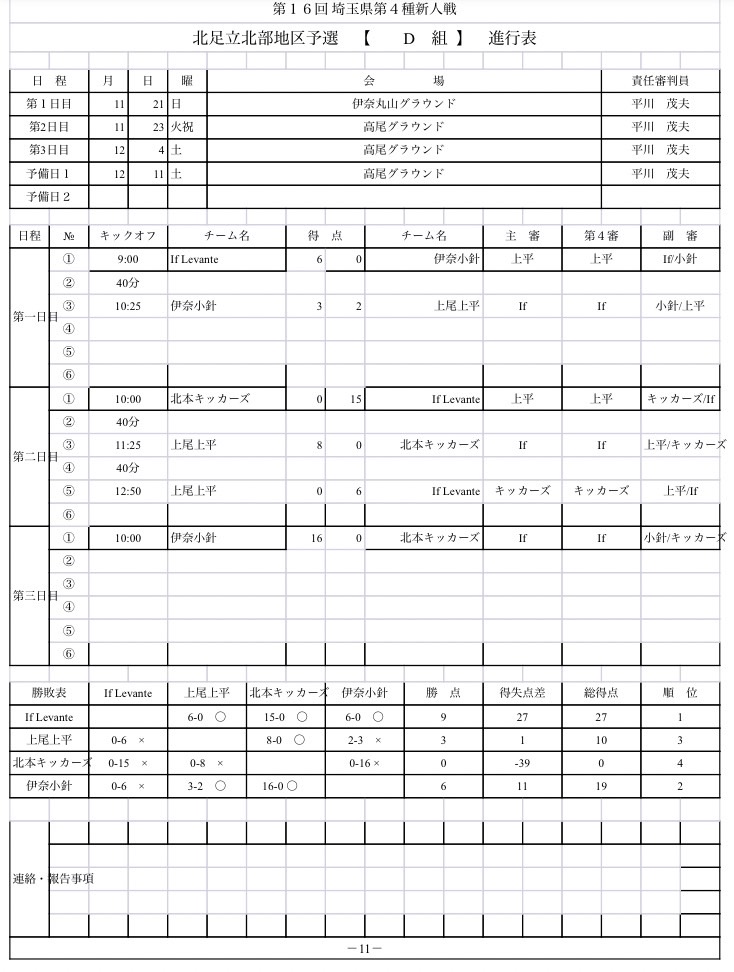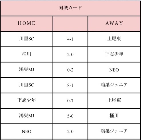 U-12 2021年度 第16回新人戦北足立北部地区予選Dグループ結果